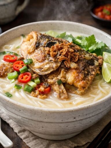 Curry Fish Head is a famous Malaysian and Singaporean comfort dish known for its bold spices, creamy curry gravy, and tender fish meat. The combination of curry leaves, mustard seeds, coconut milk, and fresh vegetables creates a deeply aromatic and satisfying meal.