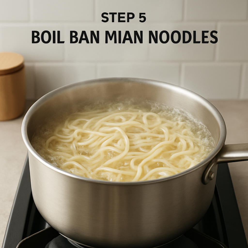 Step 5: Boil ban mian noodles in a separate pot until cooked.