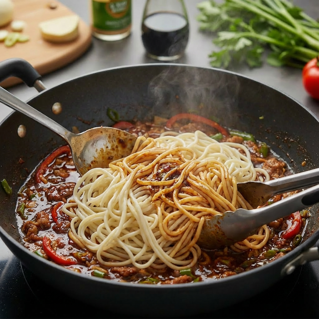 - Stir in mala paste, soy sauce, chili oil, sugar, and salt.
