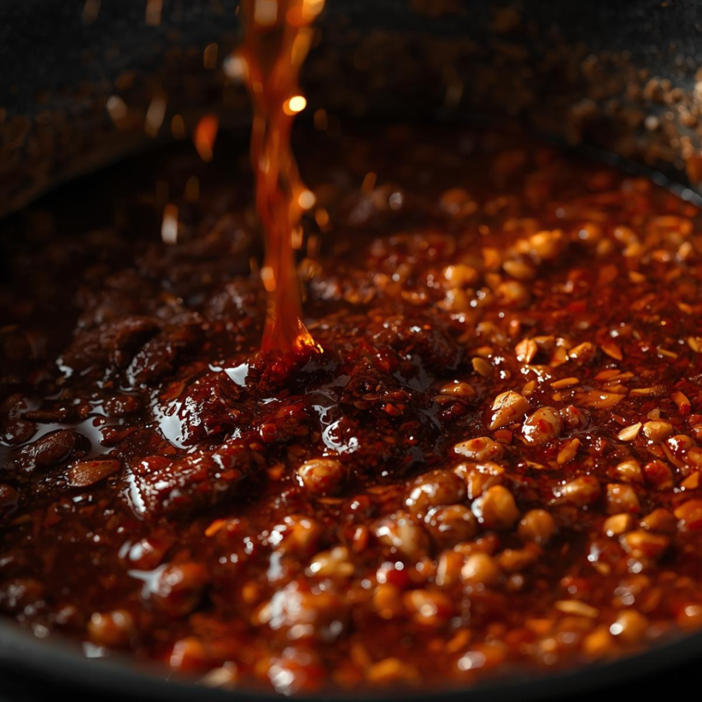 Step 4: Stir in mala paste, soy sauce, chili oil, sugar, and salt.