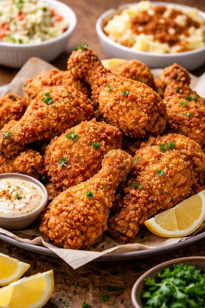 Nothing beats homemade fried chicken that’s golden, ultra-crispy on the outside and unbelievably juicy on the inside. This recipe uses a buttermilk marinade and a double-dredge coating to create that iconic crunch you hear before every bite.