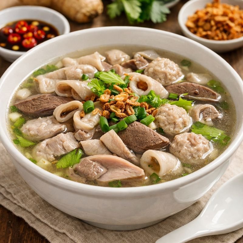 猪杂汤 is a beloved Chinese comfort soup commonly found in kopitiams and hawker stalls across Malaysia and Singapore. Made with fresh pork organs, ginger, and aromatic herbs, this soup is light, nourishing, and incredibly flavorful when prepared correctly.